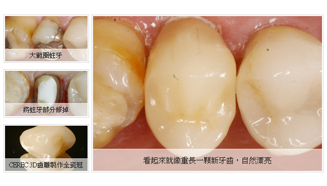 CEREC 3D 齒雕-全瓷牙冠:大範圍蛀牙