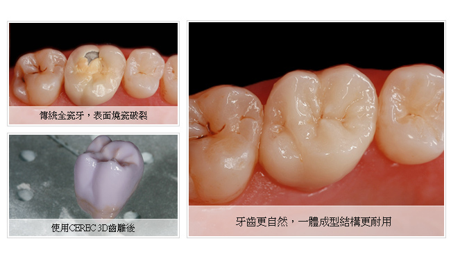 CEREC 3D 齒雕-全瓷牙冠:傳統瓷冠破裂重修