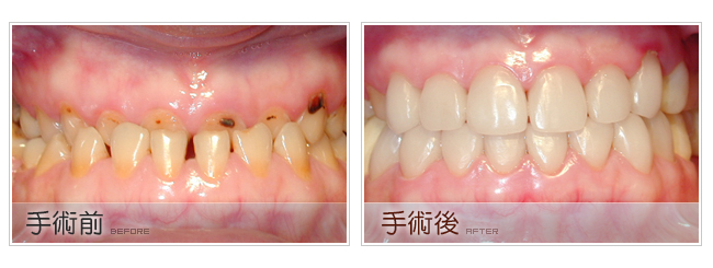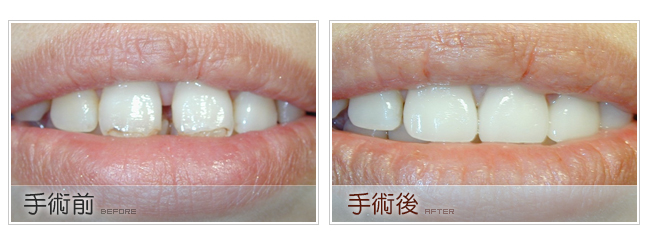 因此全瓷牙冠因為瓷與我們的真牙接近較高,所以一般門牙以全瓷牙冠來膺覆在視覺上會非常自然。而且在一些特殊場合的燈光下,如果是以金屬材質假牙做為門牙,很容易就會看得出來。另外,全瓷牙冠比較不容易導致牙齦過敏的問題。一般來說含有金屬材質的假牙時間久了,若是其假牙內的金屬成分不是那麼好,就容易使牙齦變黑或是萎縮的問題發生。