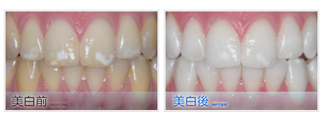利用居家美白藥劑的氧化還原反應,達到牙齒美白效果。快速的使天生黃牙、老化、輕度四環黴素染色等產生的牙齒變色美白,重新許您潔白的牙齒。